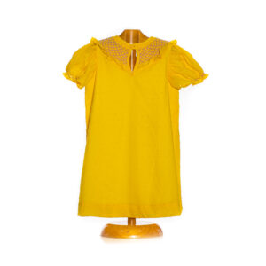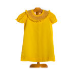 An exquisite dress for the little Miss! The Ava dress is an elegant A-line dress in Swiss dot fabric with a frill collar that is beautifully pleated by hand and heavily smocked in a contrasting color. The puff sleeves are daintily smocked to match the collar. The dress is secured with a keyhole fastening at the back. A beautiful dress for family outings and functions.